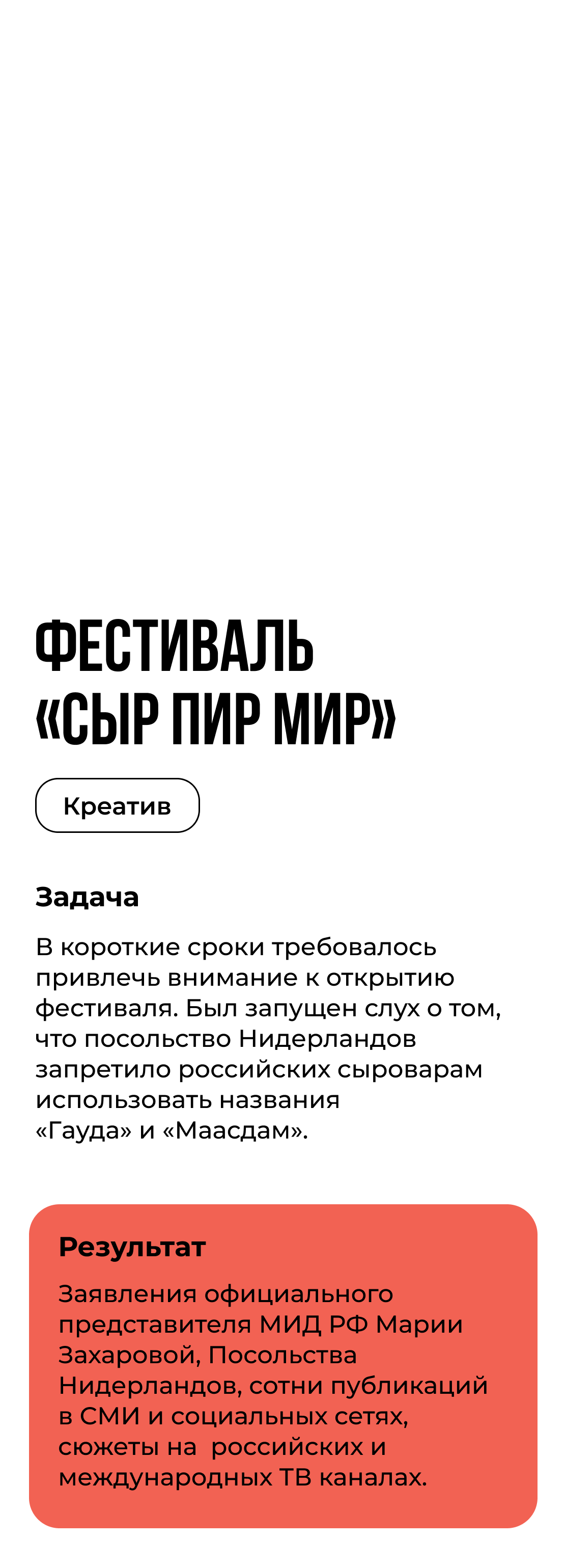 и организация; информационное сопровождение на всех этапах; размещение в российских и зарубежных СМИ
